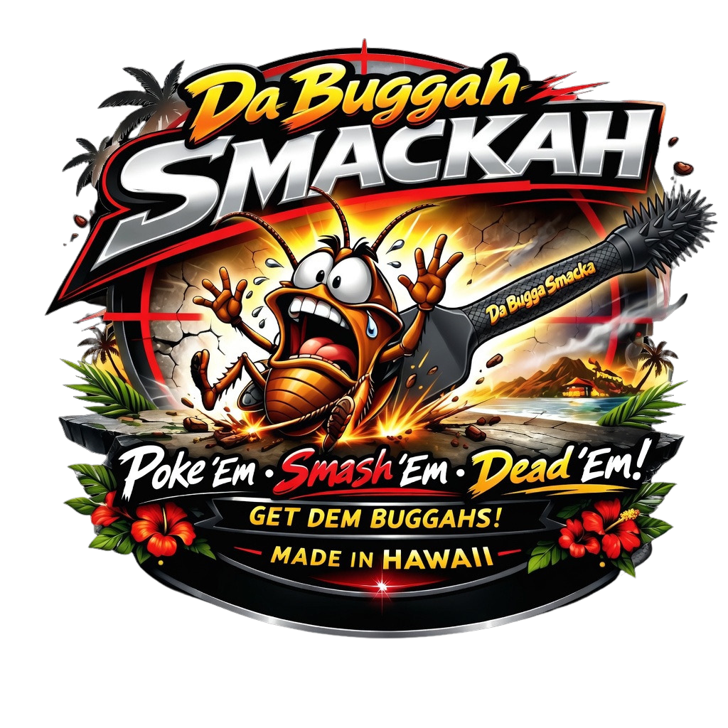 When yo slippah no get em It’s time to dead em • One smack, that’s enough • Poke em - Smash em - Dead em • Get dem Buggahs • No Buggah safe • The ultimate weapon against creepy crawlers • Supah Pokey End • 36 spike pokey head so dem buggahs can't hide nowhere — in cracks, corners, and drawers • Flat Smash Paddle • Wide 4.5" paddle for one-hit kills on open surfaces. • Fast, clean, no escape! • Durable Silicone Premium silicone construction that's easy to clean and built to last through thousands of smacks. • Ready fo' Smack Some Buggahs? • Get yours today and never let another roach escape. • Da Buggah Smackah — because da slippah no cut it no more. • Poke 'Em • Smash 'Em • Dead 'Em! • Made with Aloha in Hawaii • Inspired by Kauai Buggahs • Designed on Kauai